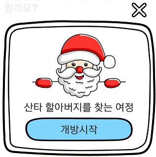 사진속 산타의 V자를 드래그하면 튀어나오는 가위를