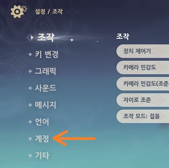 계정 탭. 안드 유저(혹은 PC유저)라면