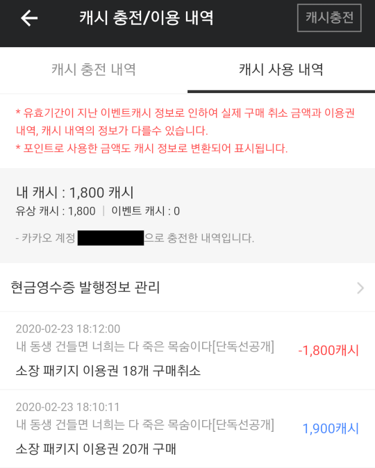 | 카카오페이지 현질하는 법 2: 내가 가진 캐시 액수&기한 확인하는 법 (0) | 2020.02.05 |