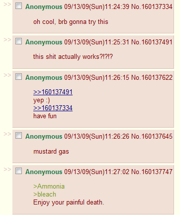 (역주: 암모니아와 표백제를 더하면