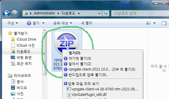(이것도 컴마다 다를수 있습니다. 제 컴엔 압축 풀리는 항목이 4개나 있네요)