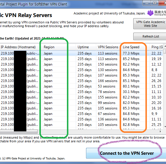 속도 제일 빠른 곳(주황네모)을 선택 후,