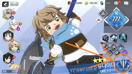 메인화면에서 '영웅'을 터치