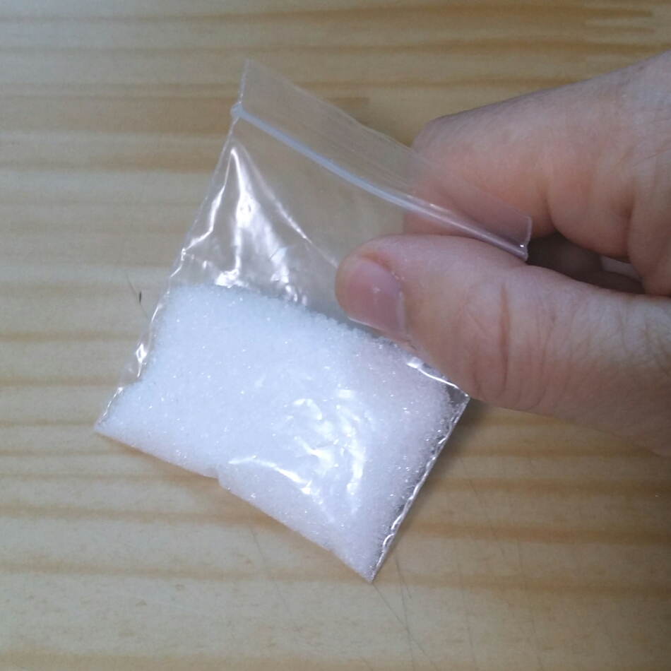 핸드백 안주머니에서 굵은 설탕이 담긴 손톱만한 지퍼백과