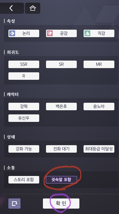 그러면 '귓속말'이 있는 생각만 나타납니다.