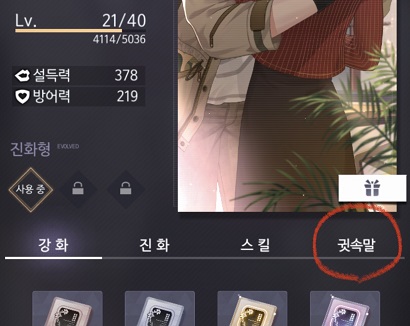 '강화' 탭에서 템 먹여서 40렙 만들면 열려요.