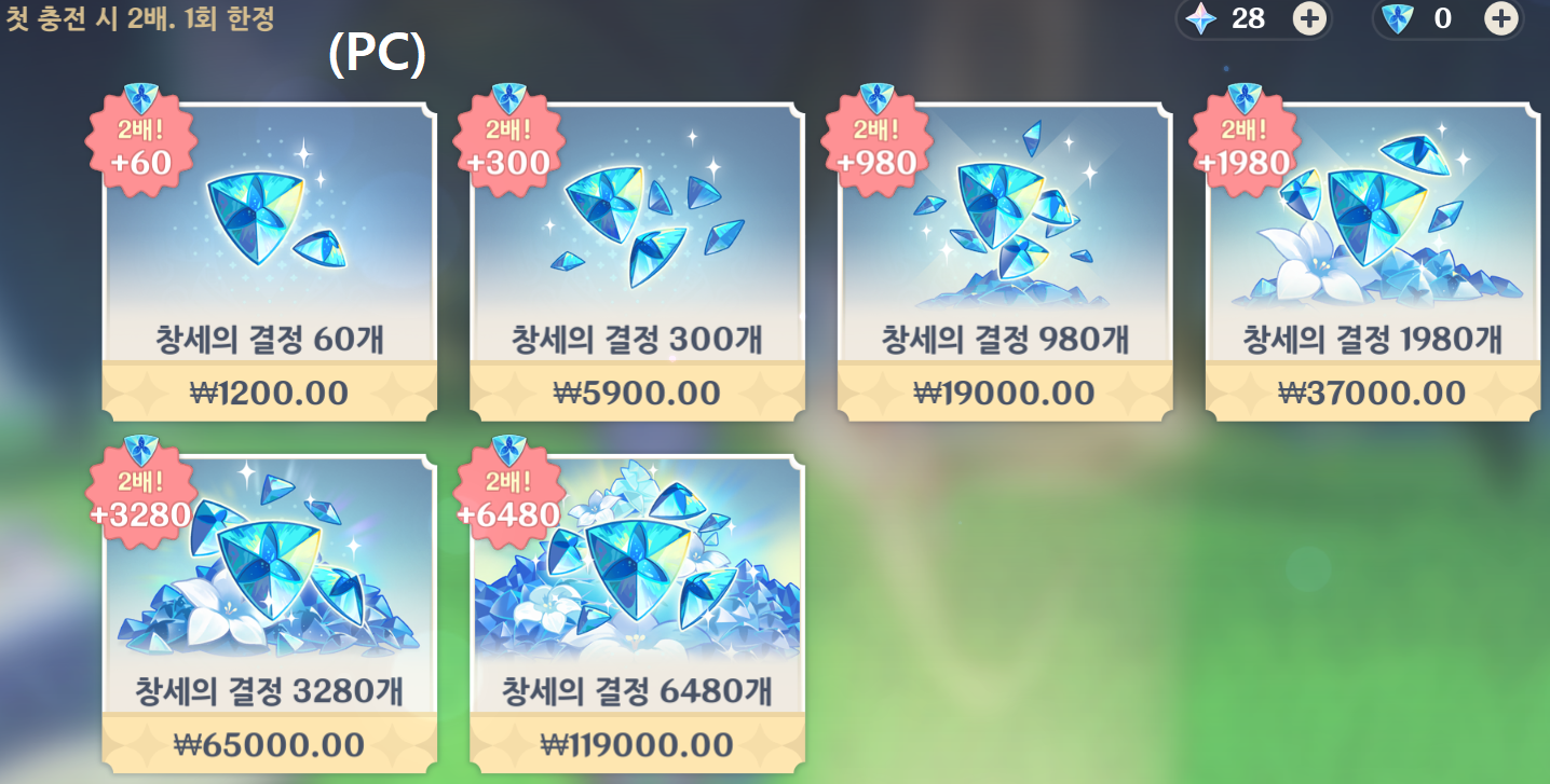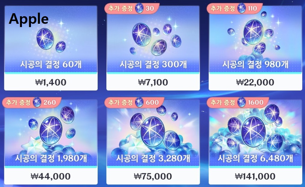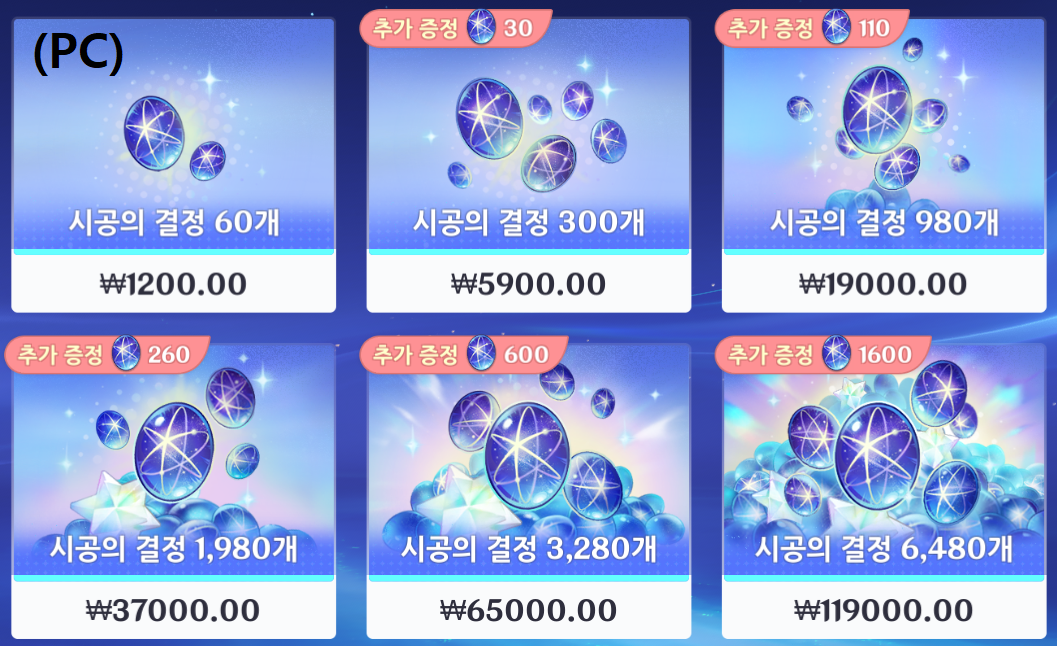 | 60개 | 창세의 결정과 동일 가격 (개당 22~24원) |